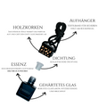- Design: Hochwertiger Glasflakon mit Holzverschluss & Duftstein